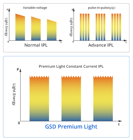 OPT refers to Optimal Pulse Technology. It is an enhanced technology of IPL. Lumenis is the first brand who introduce OPT technology. OPT gives users the ability to control the pulse shape. No matter whether it acts with a single pulse or multi-pulse, OPT always presents uniform and accurate energy output. Energy could instantaneously achieve peak power and keep stable during the entire pulse duration without any sudden energy fluctuation.